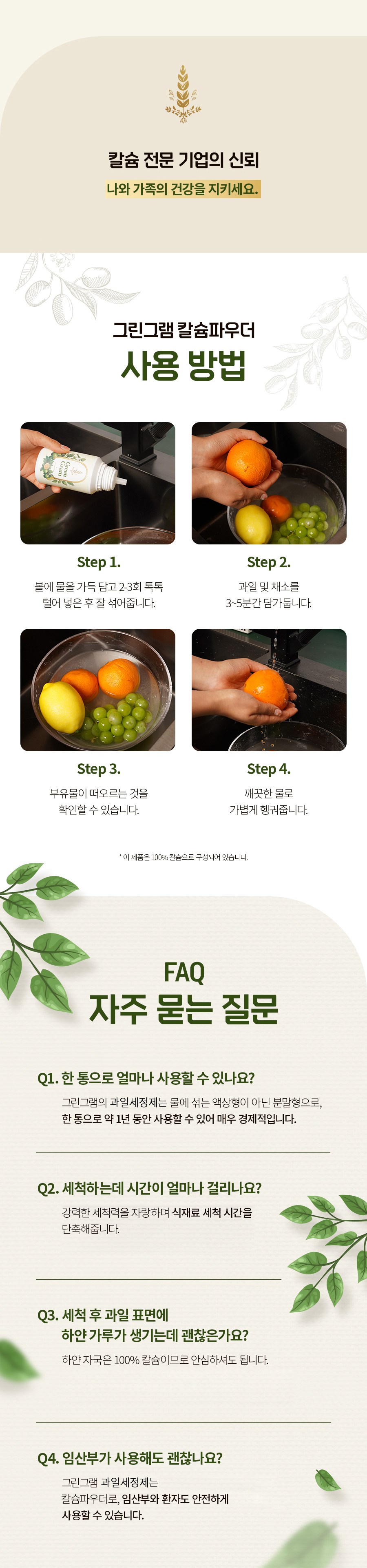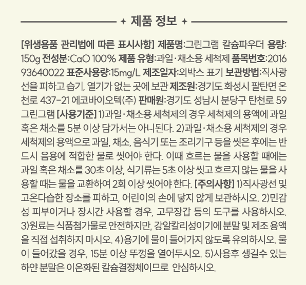 | 품명 및 모델명 | 그린그램 칼슘 파우더 | 인증/허가 사항 | 위생용품 |