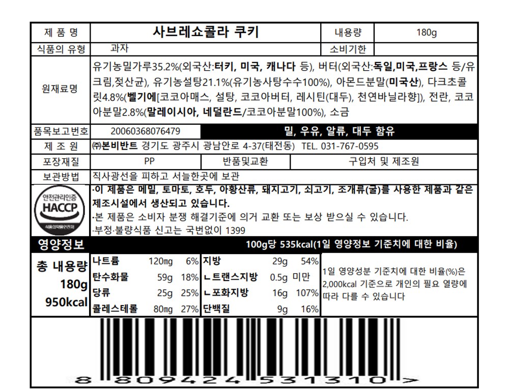 | 포장단위별 내용물의 용량(중량), 수량 | 180g, 1개 | 원재료명 및 함량 | 컨텐츠 참조 |