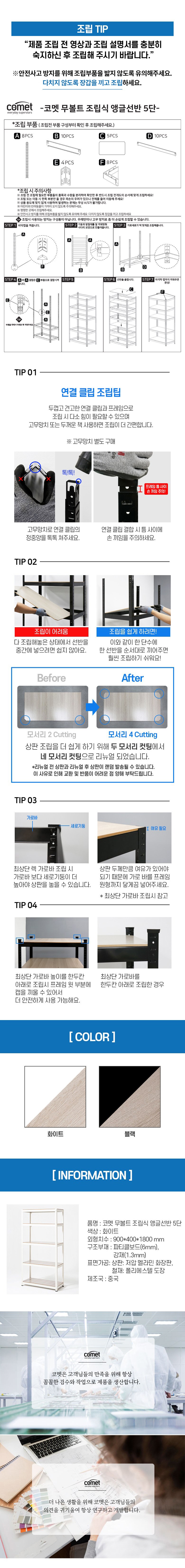 | 품명 | 코멧 앵글 선반 5단 900*400*1800 화이트 | KC 인증정보 | 해당없음 |