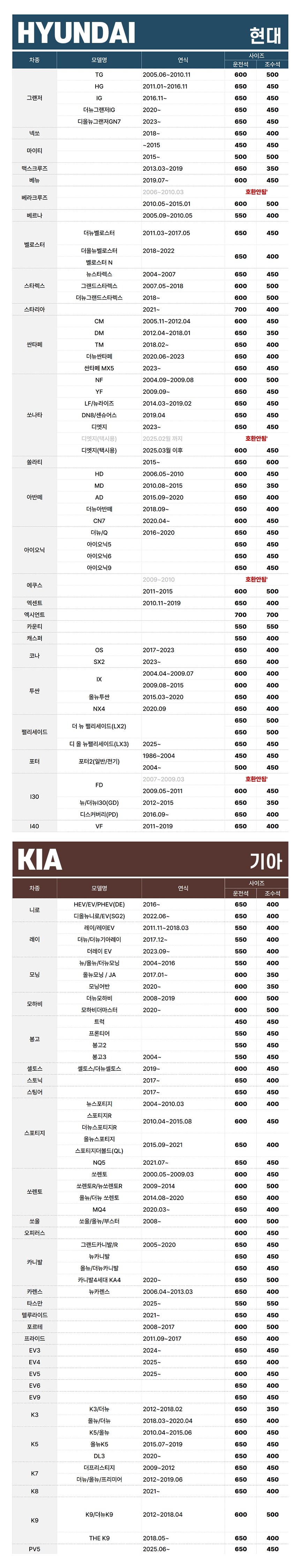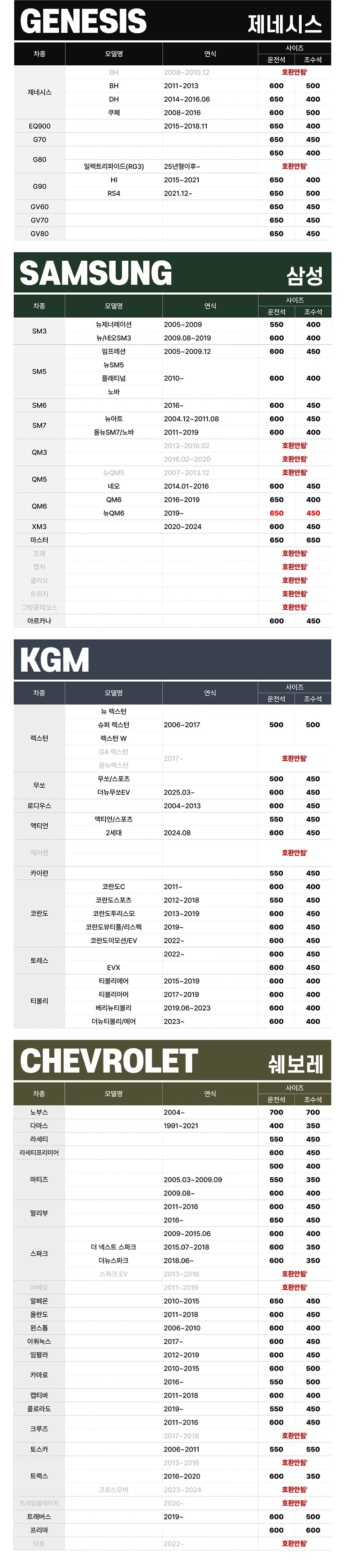 | KC 인증정보(자동차관리법에 따른 자기인증 대상 자동차부품에 한함) | 해당없음 | 제조자(수입자) | 주식회사 씨앤에프 |
