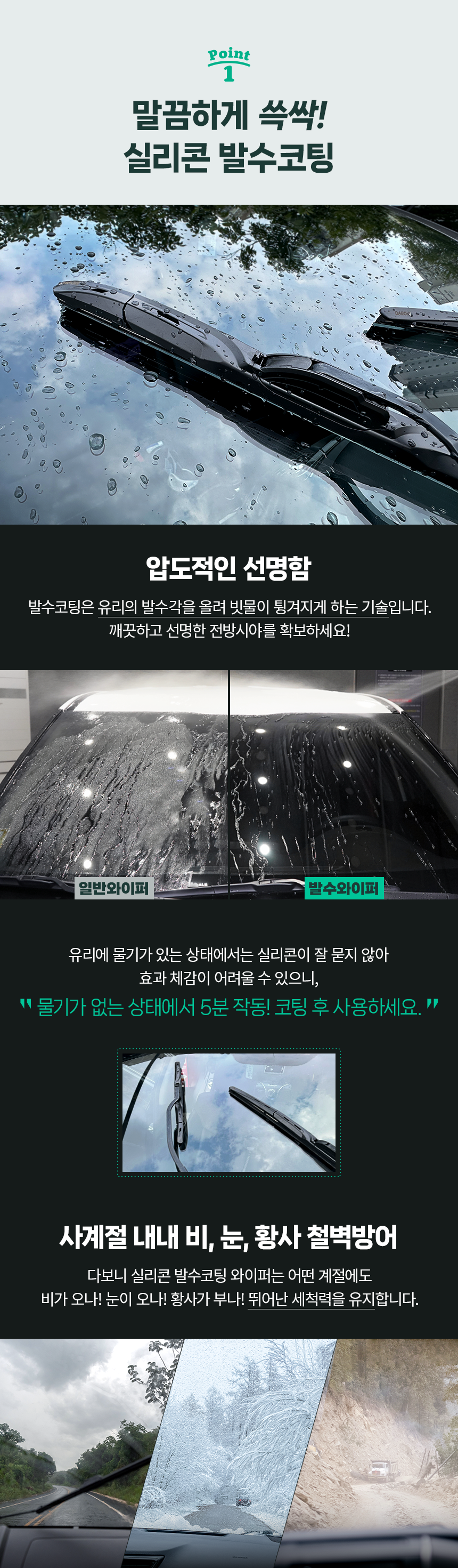 - 발수 코팅 유무: 발수 코팅