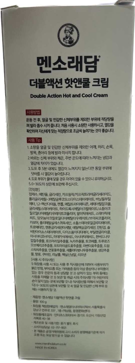 | 화장품제조업자, 화장품책임판매업자 및 맞춤형화장품판매업자 | 인터코스코리아 / 맨소래덤아시아퍼시픽(주) | 제조국 | 대한민국 |