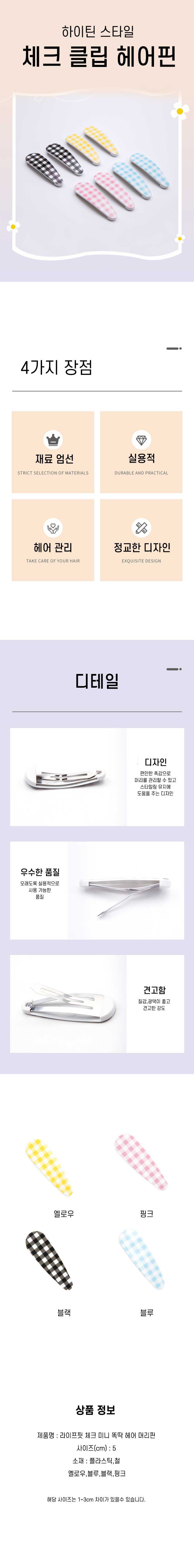 라이프핏 체크 미니 똑딱 헤어 머리핀, 블루, 10개