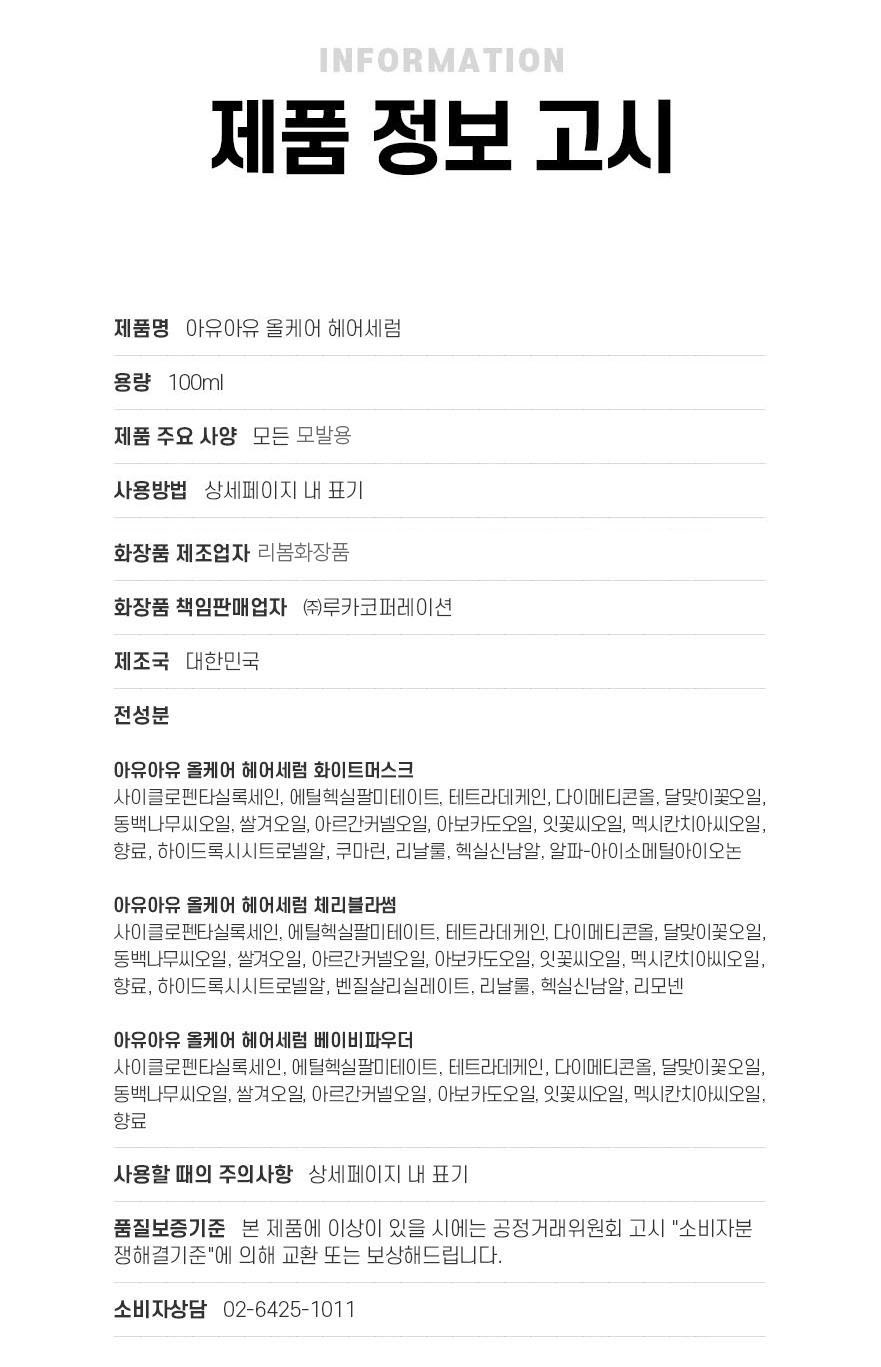 | 용량(중량) | 100ml | 제품 주요 사양 | 모든 모발용 |