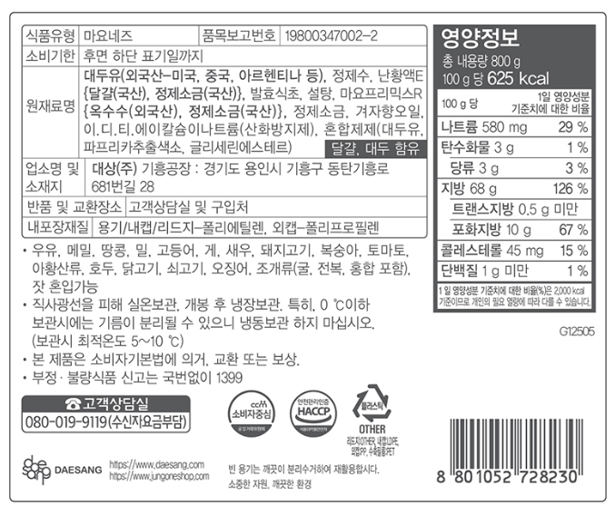 | 제품명 | 프레시 마요네즈 | 식품의 유형 | 컨텐츠 참조 |