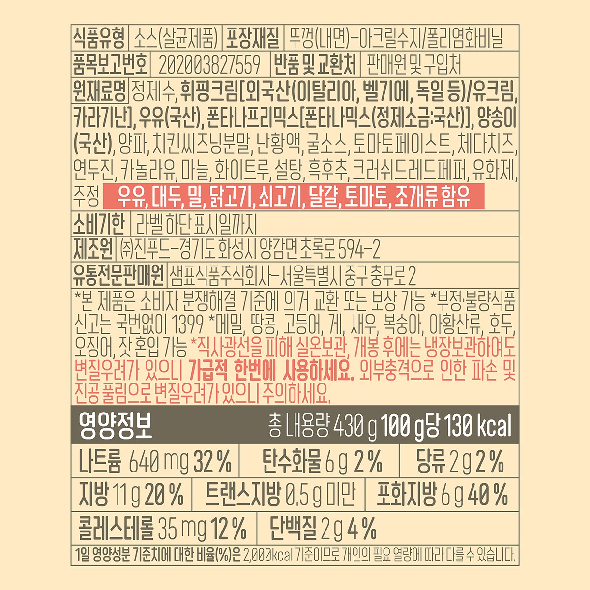 | 제품명 | 투움바 그릴드 머쉬룸 크림 파스타소스 | 식품의 유형 | 컨텐츠 참조 |
