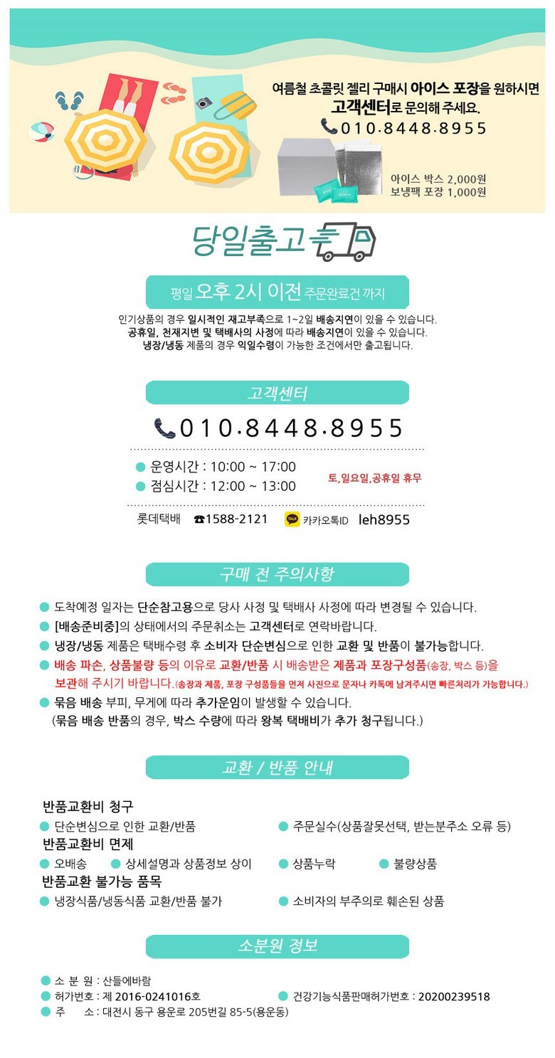 | 생산자 및 소재지 | 상품 상세페이지 참조 | 제조연월일, 소비기한 또는 품질유지기한 | 상품 상세페이지 참조 |