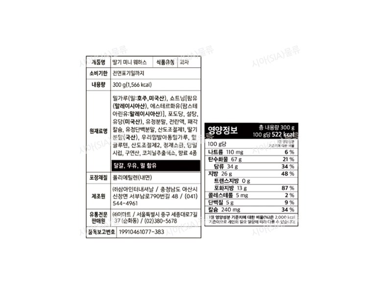 | 제품명 | 딸기 미니 웨하스 | 식품의 유형 | 과자 |