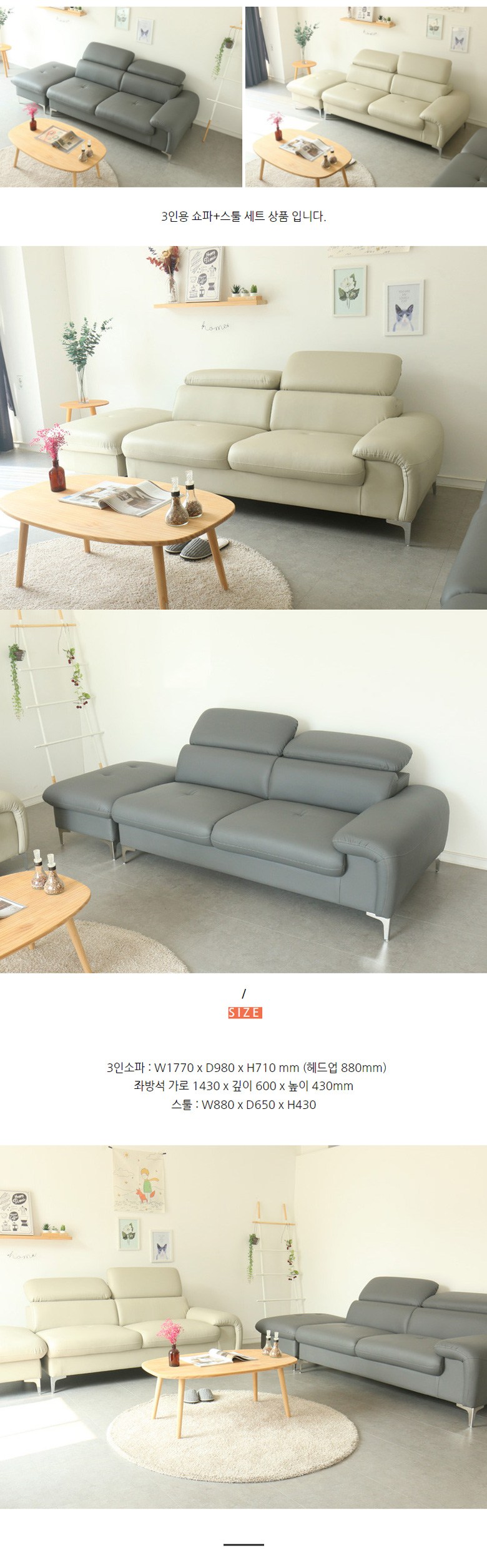 | 색상 | 아이보리,그레이 중 택1 | 구성품 | 3인용소파,스툴 |