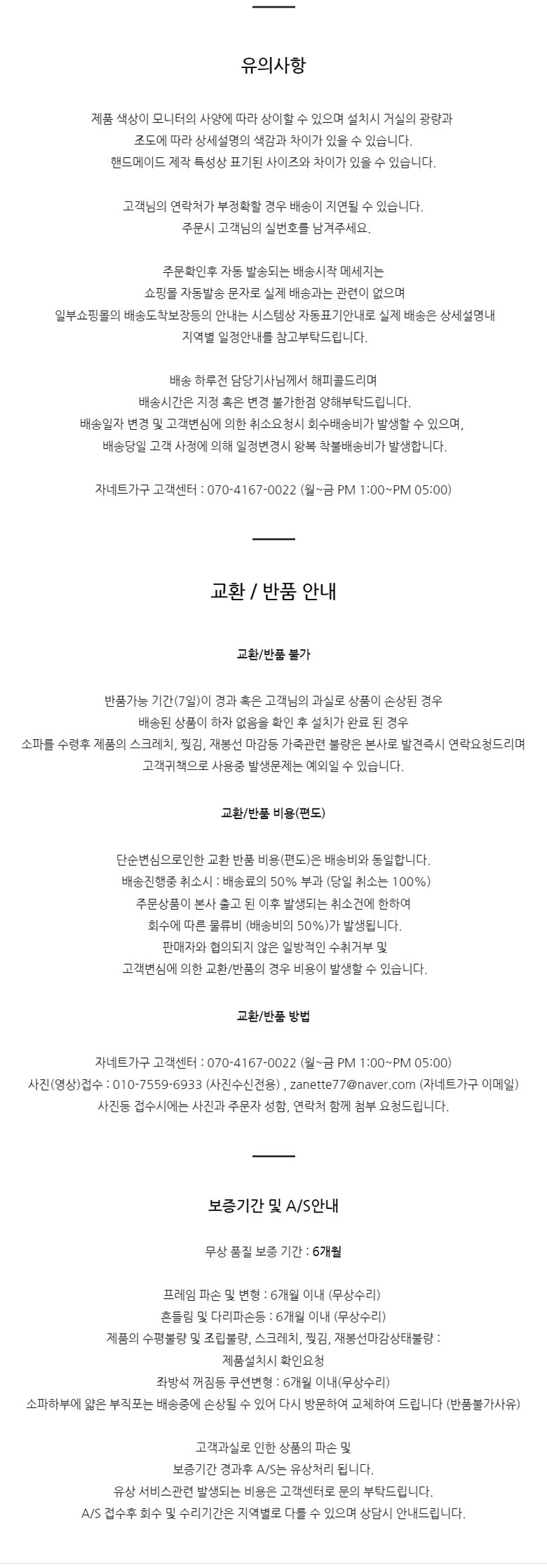 | 주요 소재 | PU가죽, 인조가죽, 애쉬원목, 마이크로화이바 외 | 제조자(수입자) | 주식회사 자네트가구 |