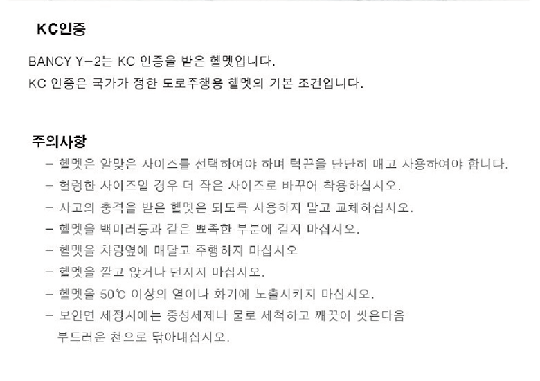| 품명 및 모델명 | 벤시 오픈페이스 오토바이 헬멧 Y-2 | 동일모델 출시년월 | 알수없음(업체미제공) |