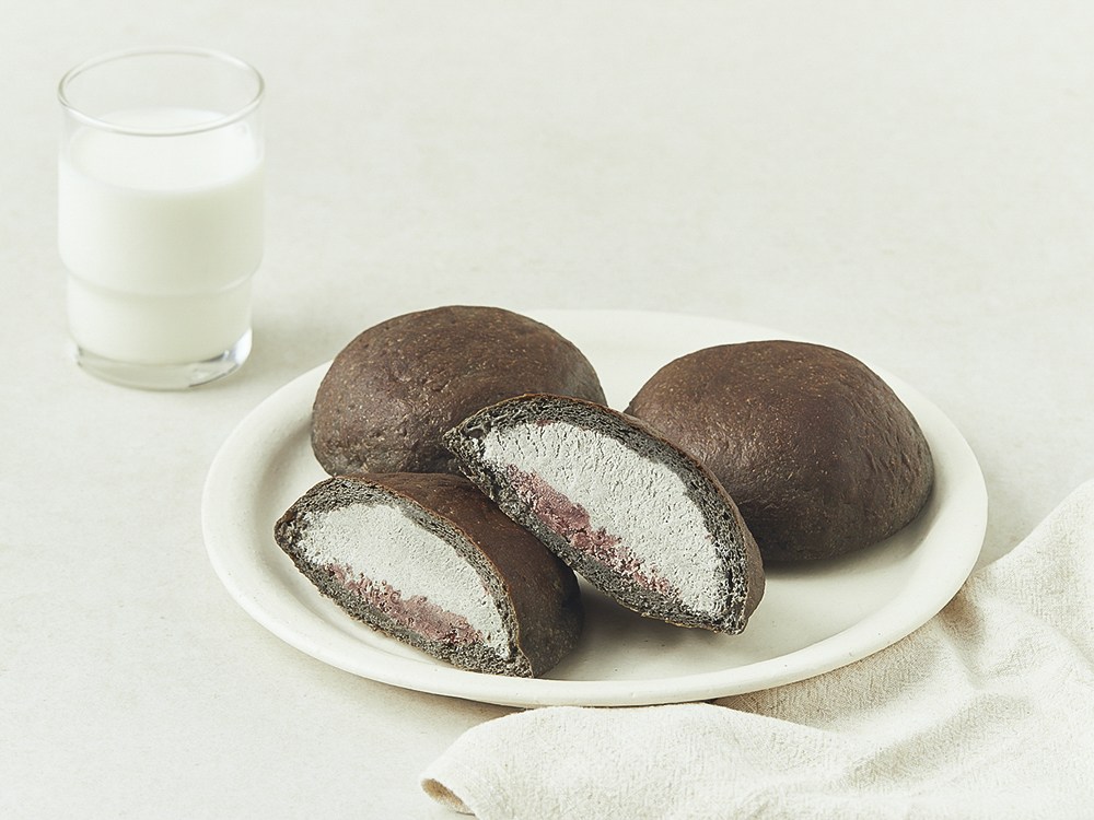 저당, 고단백 흑임자 크림빵이에요. 질기거나 텁텁한 느낌 없이 부드러운 빵 속에, 고소한 흑임자 페이스트와 달콤한 통팥앙금을 채워 넣었죠. 한입 베어 물면 크림이 풍성하게 번져 나오며 다채로운 풍미를 선사한답니다. 냉동실에 넣어 두었다가 취향에 맞춰 그대로 시원하게, 혹은 살짝 해동해 부드럽게 즐겨보세요.