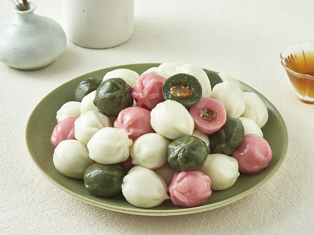 다채로운 색감으로 눈길을 사로잡는 모듬 꿀떡이에요. 입에 쏙 넣으면 쫄깃한 식감과 함께 달콤하고 고소한 맛을 선사한답니다. 식혜나 수정과를 곁들여 여유로운 디저트 타임을 즐겨보세요.