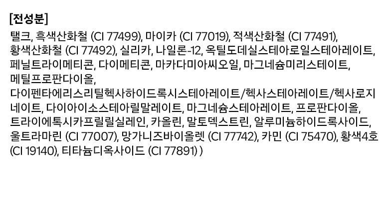 | 용량(중량) | 1.8g | 제품 주요 사양 | 모든 피부용 |