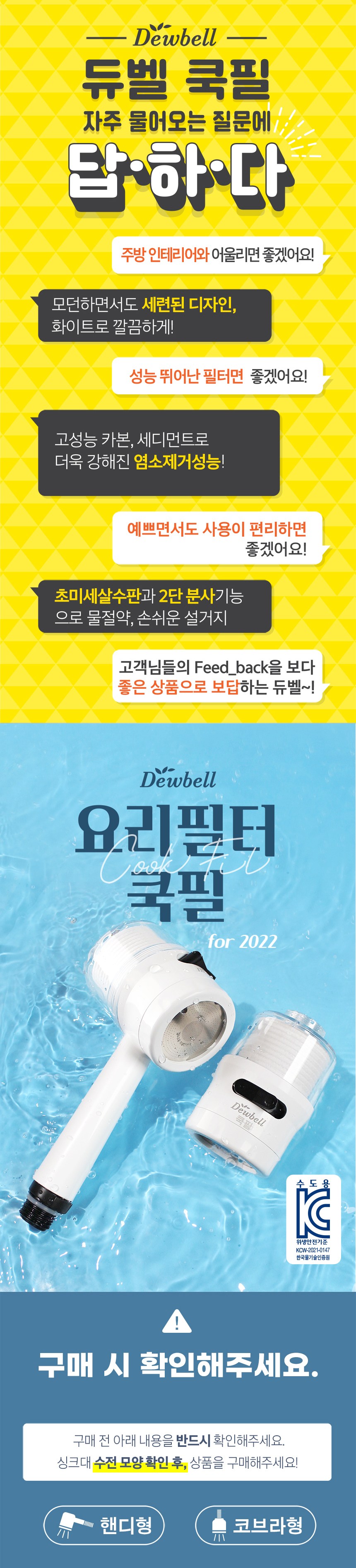 | 품명 및 모델명 | 듀벨 쿡필 코브라형 수전 화이트 + 카본필터 세트 | 인증/허가 사항 | KCW-2021-0147 |