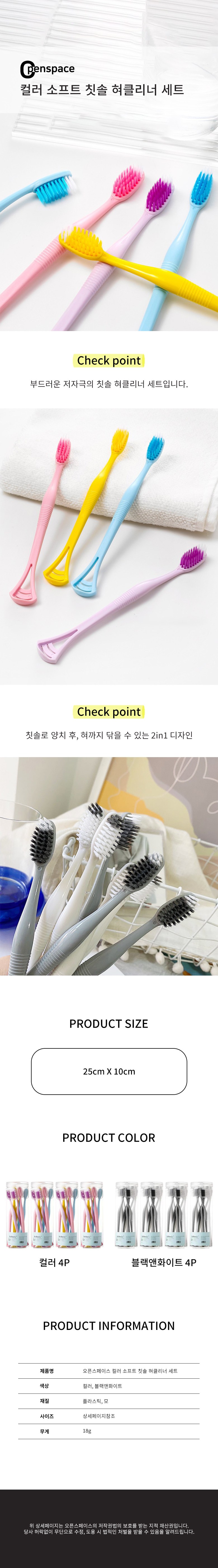 | 품명 및 모델명 | 오픈스페이스 컬러 소프트 칫솔 혀클리너 블랙 앤 화이트 2종 x 4p 세트 | 인증/허가 사항 | 해당없음 |