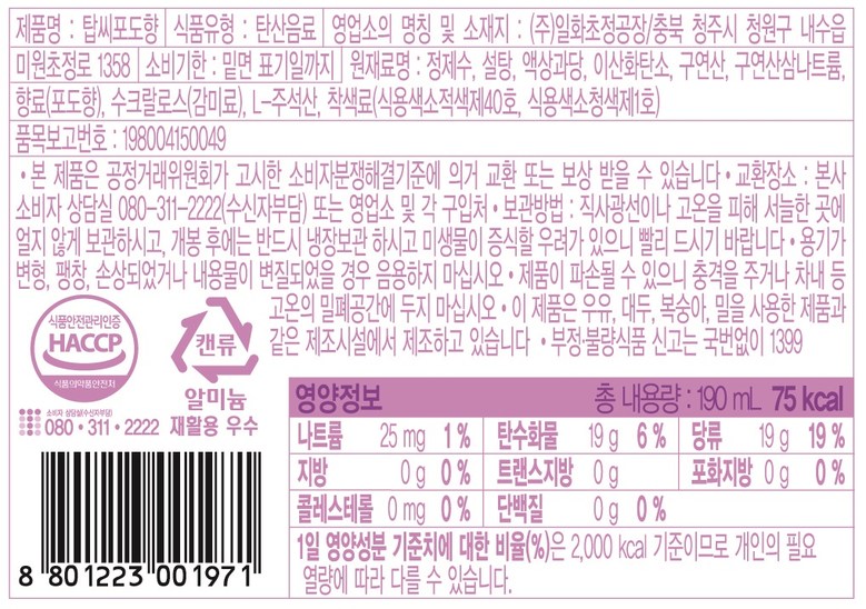 | 제품명 | 상품 상세페이지 참조 | 식품의 유형 | 상품 상세페이지 참조 |