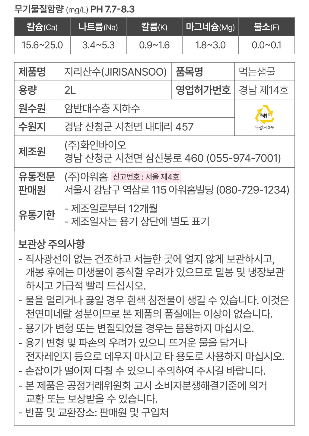 | 제품명 | 컨텐츠 참조 | 식품의 유형 | 먹는샘물 |