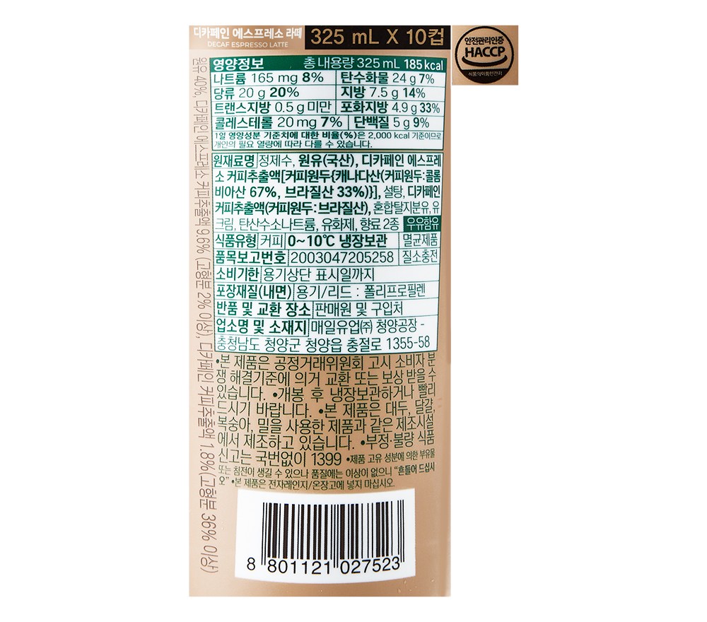 - 카페인 유형: 디카페인