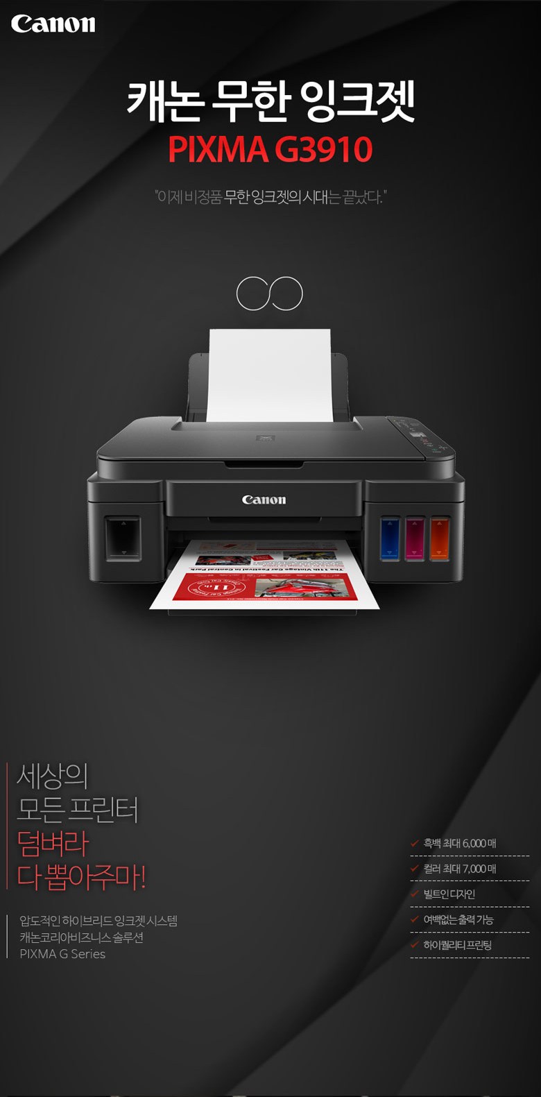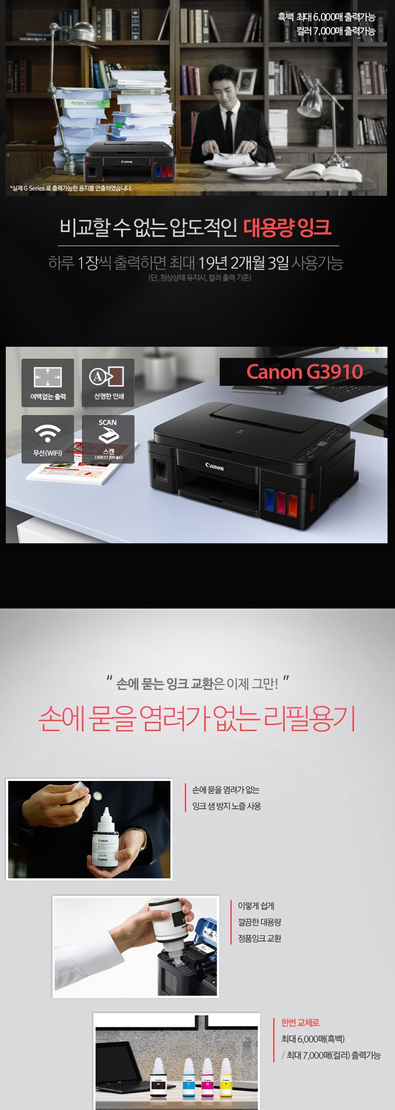 | 품명 및 모델명 | 캐논 무한 무선 복합기 G3910 | KC 인증정보 | 본품 : MSIP-RMM-CIN-K10471, ZU10041-17003A/ 잉크: HB19-18-0039 |