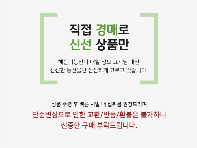 | 배송방법 | 신선/냉장/냉동 | 배송비 | 무료배송 - 도서산간 지역 배송불가 |
