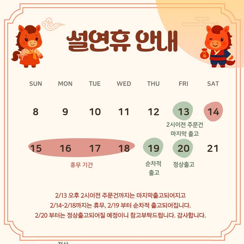 출고 마감 시간이 오후 3시에서 2시로 변경 된 점 확인 부탁드립니다.