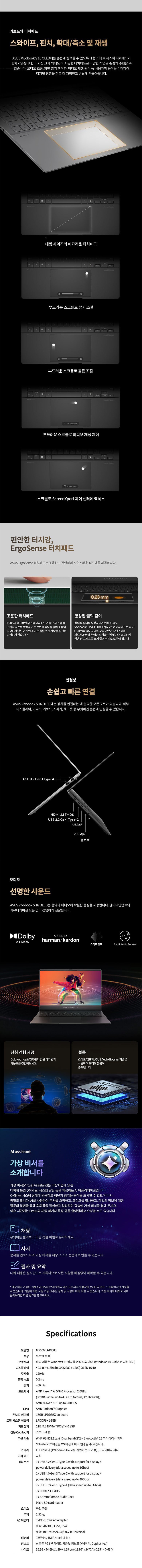 | 품명 및 모델명 | 노트북 컴퓨터 / 모델명: M5606KA-RI083 / 인증모델명: M5606K | KC 인증정보 | YU10168-24009, R-R-MSQ-NB-M5606K |
