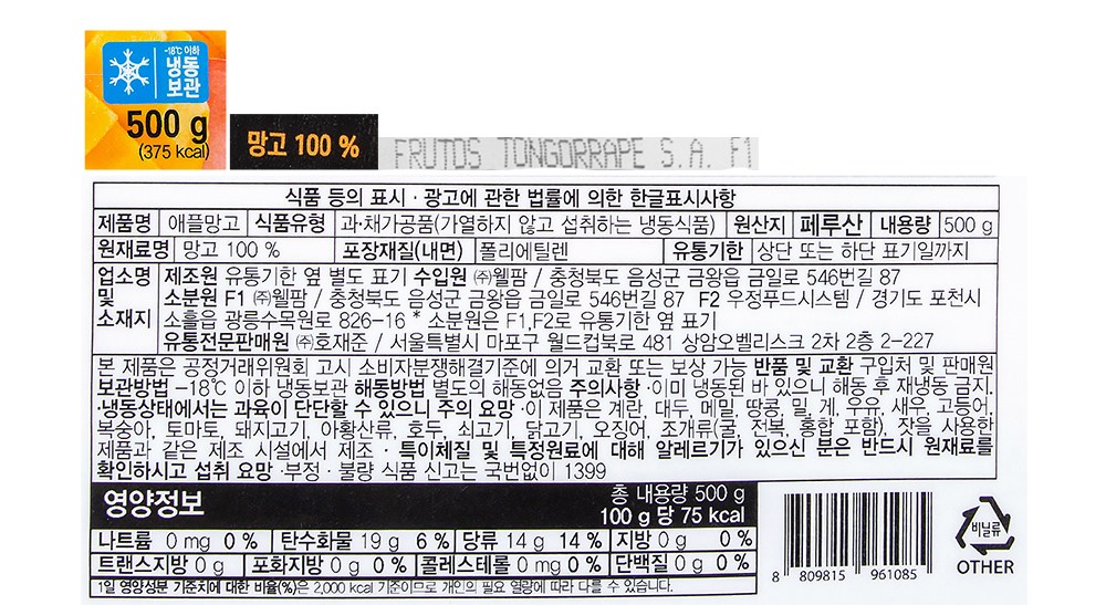 황금빛 과육을 뽐내는 애플망고가 먹기 좋은 크기로 손질되어 있어요. 새콤하면서도 달콤한 풍미가 일품이지요. 시원한 과일을 원할 때 손쉽게 활용할 수 있답니다. 무더운 날 빙수나 스무디 등으로 다양하게 즐겨보세요.