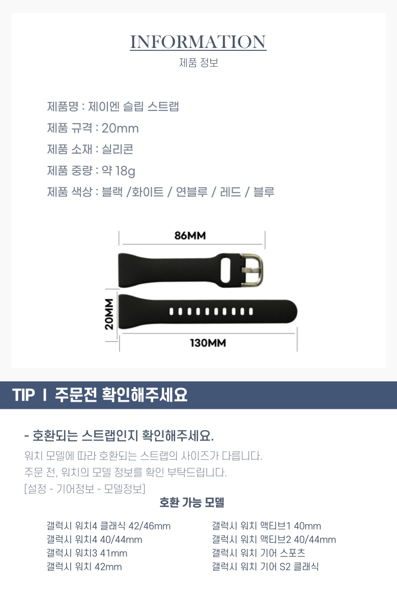 | 품명 및 모델명 | 제이엔 갤럭시워치 슬립 스트랩 20mm | 인증/허가 사항 | 해당없음 |