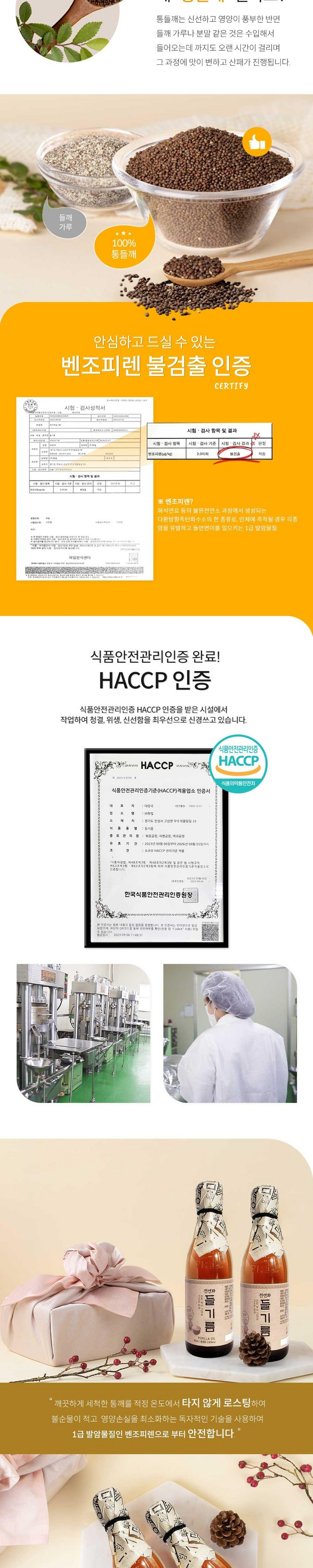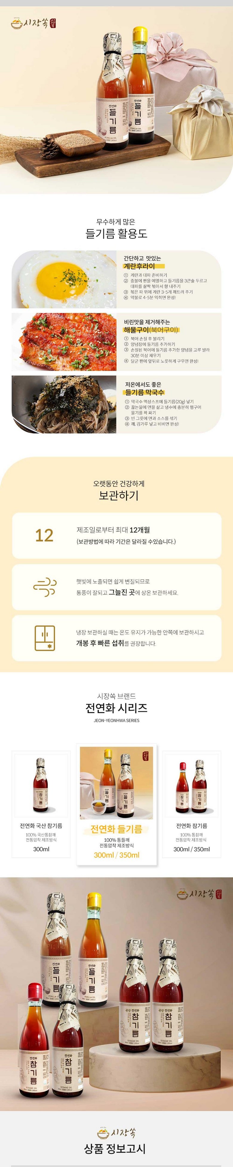 | 제품명 | 시장속 전연화 들기름, 350ml, 3개 | 식품의 유형 | 들기름 |