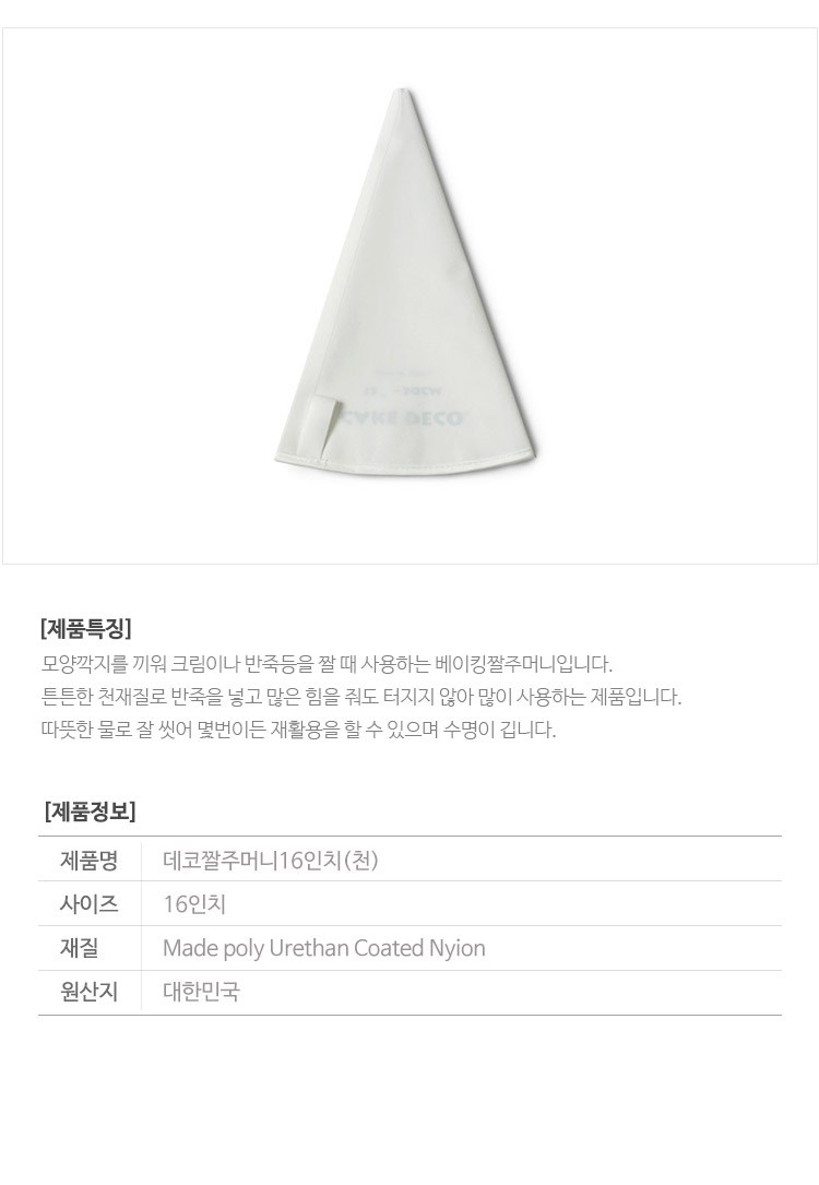 | 품명 및 모델명 | 데코짤주머니-16인치 | 재질 | 컨텐츠참조 |