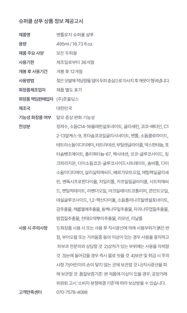 | 용량(중량) | 495ml | 제품 주요 사양 | 모든 모발용 |