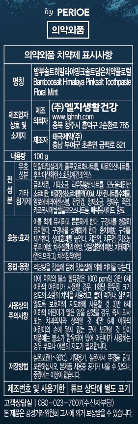 | 품명 및 모델명 | 밤부솔트히말라야핑크솔트담은치약플로럴 | 인증/허가 사항 | 의약외품 |