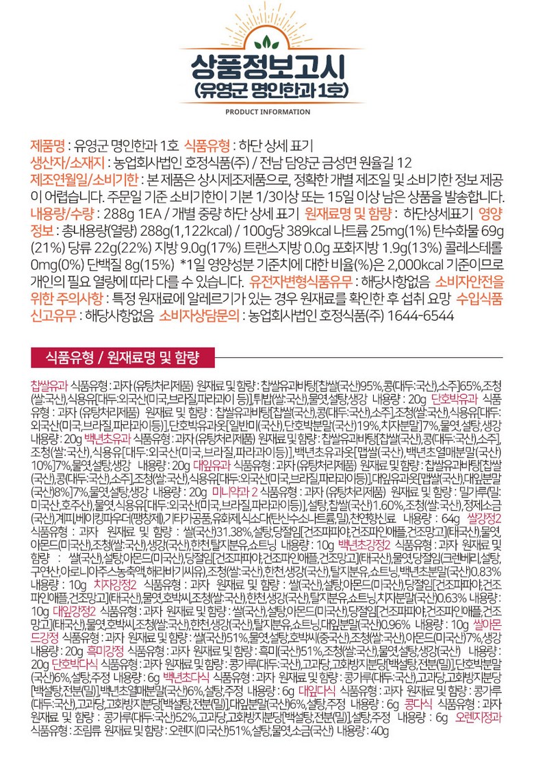 | 생산자 및 소재지 | 상품 상세페이지 참조 | 제조연월일, 소비기한 또는 품질유지기한 | 업데이트 예정 |