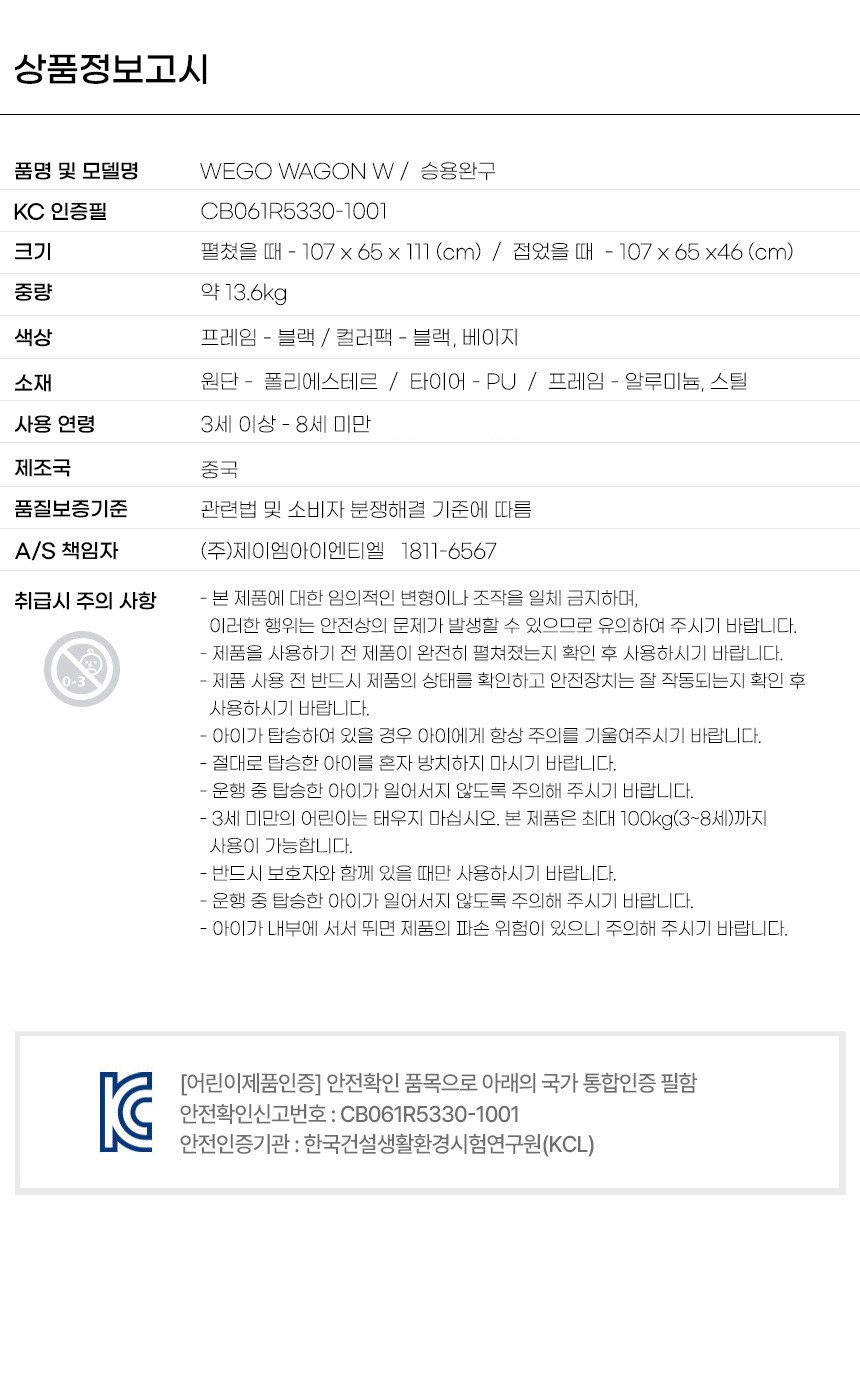 | 품명 및 모델명 | 폼포라 절충형 위고 유아웨건 W | KC 인증정보 | CB061R5330-1001 |