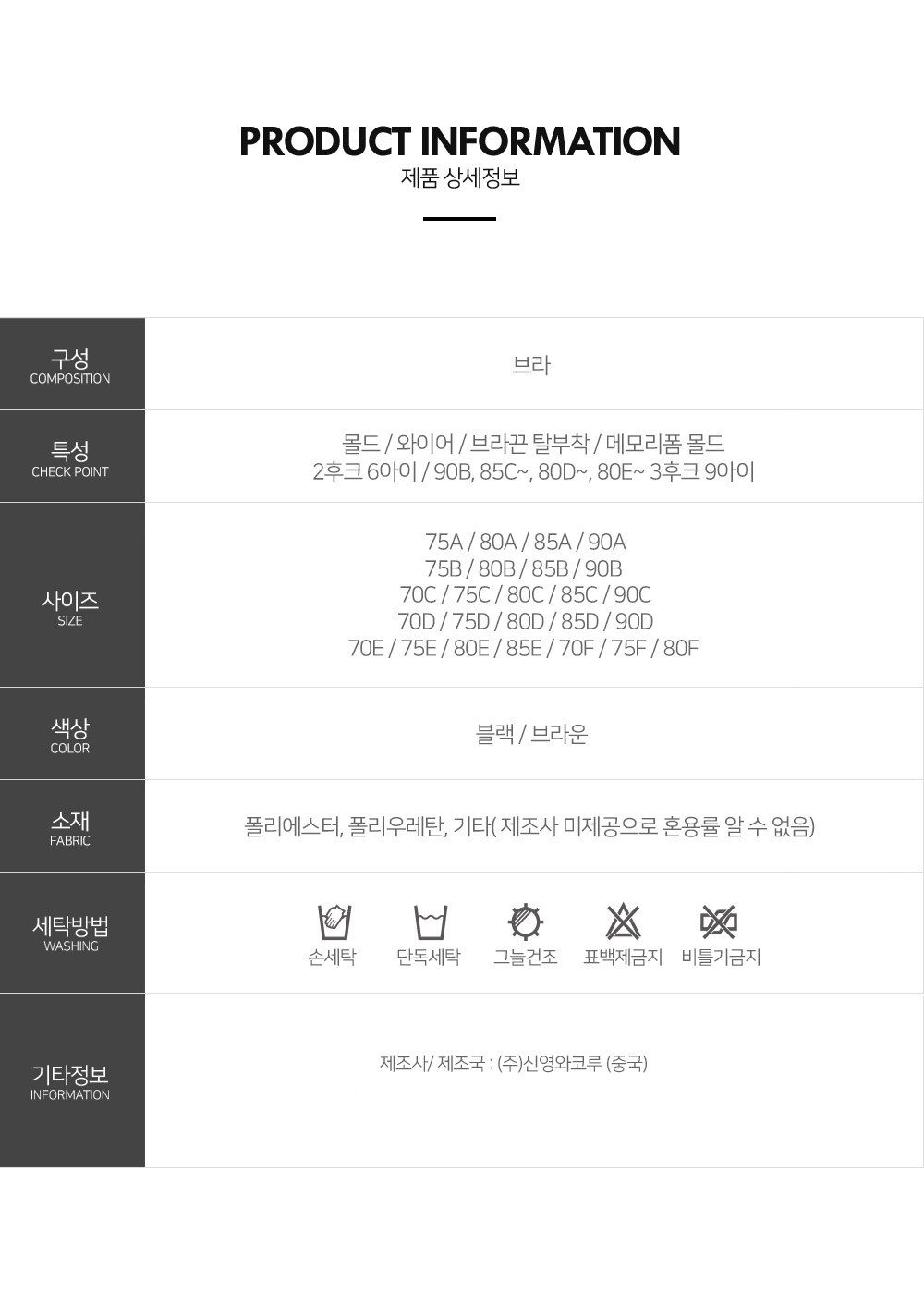 | 치수 | 컨텐츠참조 | 제조자(수입자) | ㈜신영와코루 / (주)엔씨모드 |