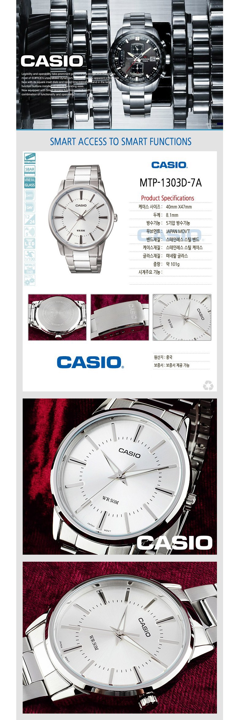 | 치수 | 컨텐츠 참조 | 제조자(수입자) | 카시오(정확한 제조사 또는 수입사 정보 업체 미제공) |