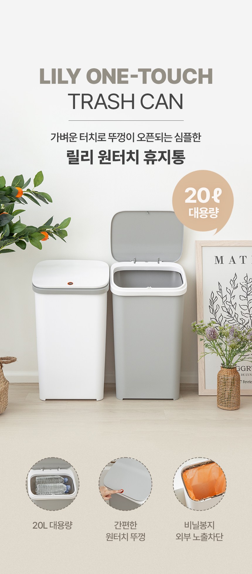 | 품명 및 모델명 | 릴리원터치휴지통20L_그레이 | 인증/허가 사항 | 해당없음 |