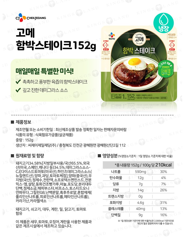 | 제품명 | 상품 상세페이지 참조 | 식품의 유형 | 상품 상세페이지 참조 |