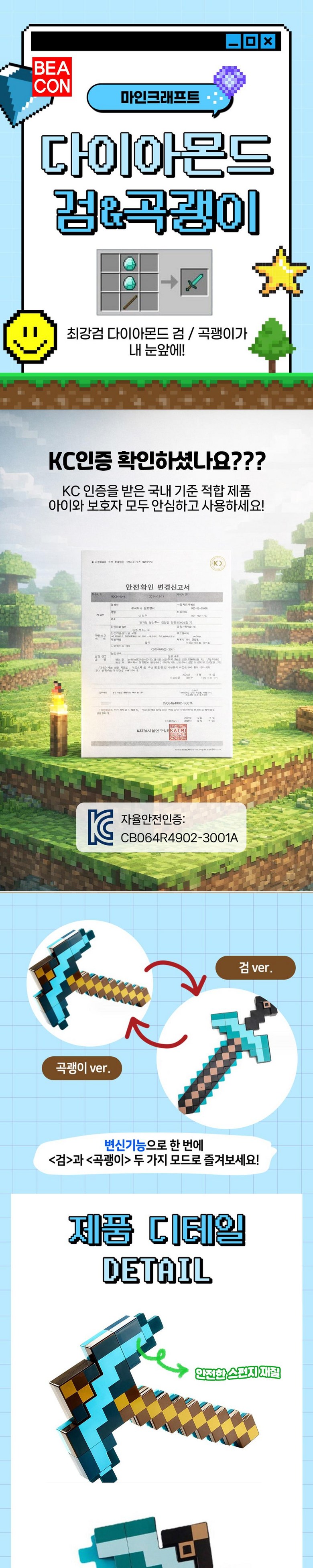 | 품명 및 모델명 | 마인크래프트 다이아몬드 검&곡괭이 | 인증/허가 사항 | CB064R4902-3001 |