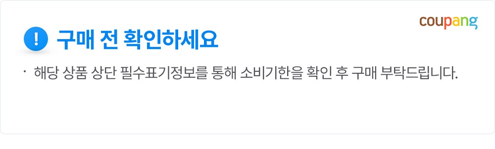 | 교환/반품 신청 기준일 | ㆍ단순변심에 의한 로켓배송 상품의 교환/반품은 제품 수령 후 30일 이내까지, 교환/반품 제한사항에 해당하지 않는 경우에만 가능 (교환/반품 비용 고객부담) ㆍ상품의 내용이 표시·광고의 내용과 다른 경우에는 상품을 수령한 날부터 3개월 이내, 그 사실을 안 날 또는 알 수 있었던 날부터 |