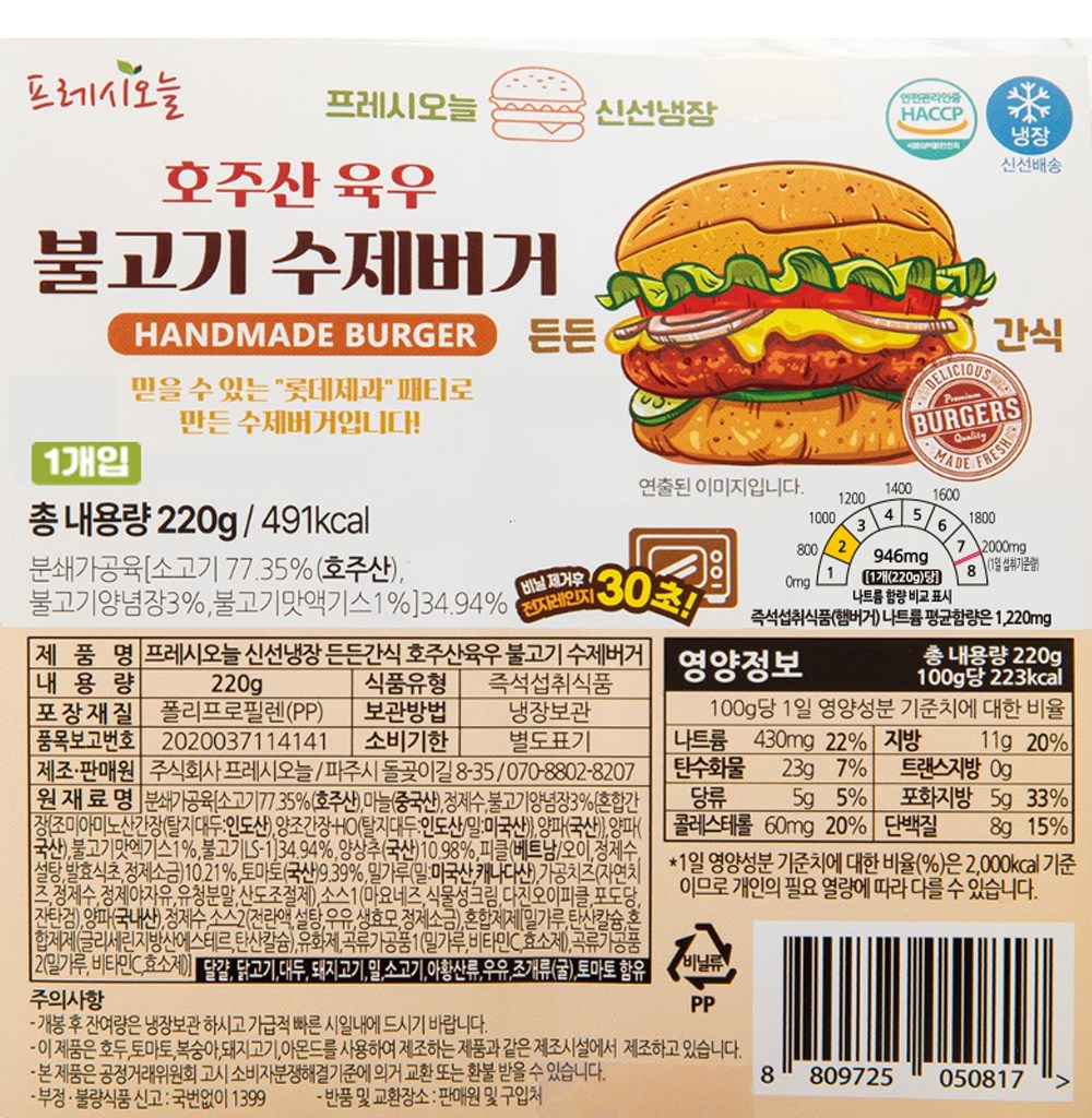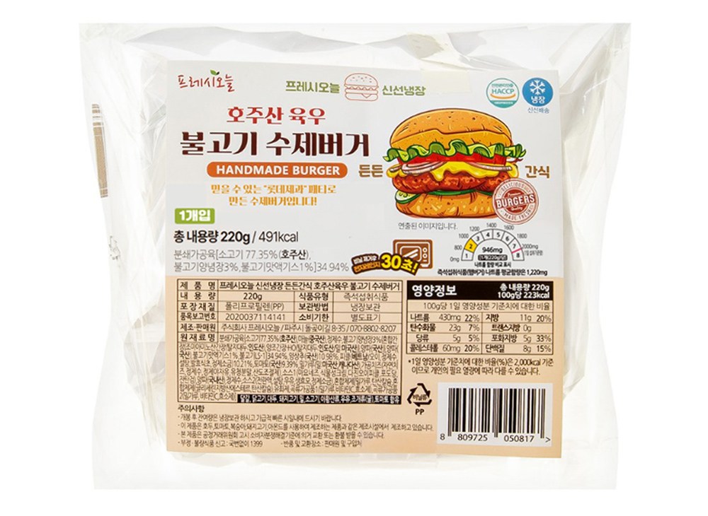 클래식한 버거의 정통, 불고기 버거예요. 싱그러운 야채에 에워싸인 부드러운 패티가 달콤한 풍미를 선사하지요. 차갑게 먹어도, 전자레인지에 데워 먹어도 맛있어요. 냉장고 문만 열면 손쉽게 버거를 즐길 수 있답니다.