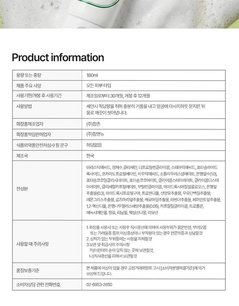 | 화장품제조업자, 화장품책임판매업자 및 맞춤형화장품판매업자 | 상품 상세페이지 참조 | 제조국 | 상품 상세페이지 참조 |