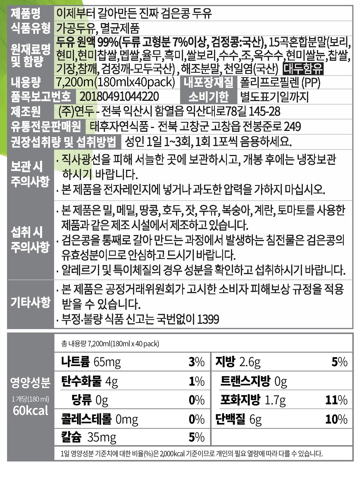 | 포장단위별 내용물의 용량(중량), 수량 | 컨텐츠 참조 | 원재료명 및 함량 | 컨텐츠 참조 |