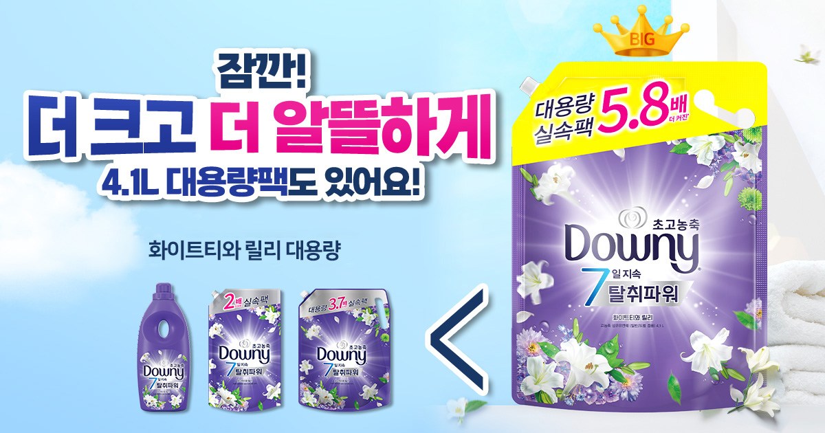 | 품목 및 제품명 | 섬유유연제,탈취제 / 다우니 고농축 섬유유연제 (7일 탈취파워 화이트티와 릴리) | 용도(표백제의 경우 계열을 함께표시) 및 제형 | 섬유유연제(섬유용, 신발용), 탈취제[일반용(물체용)] / 비분사형-액체형 |