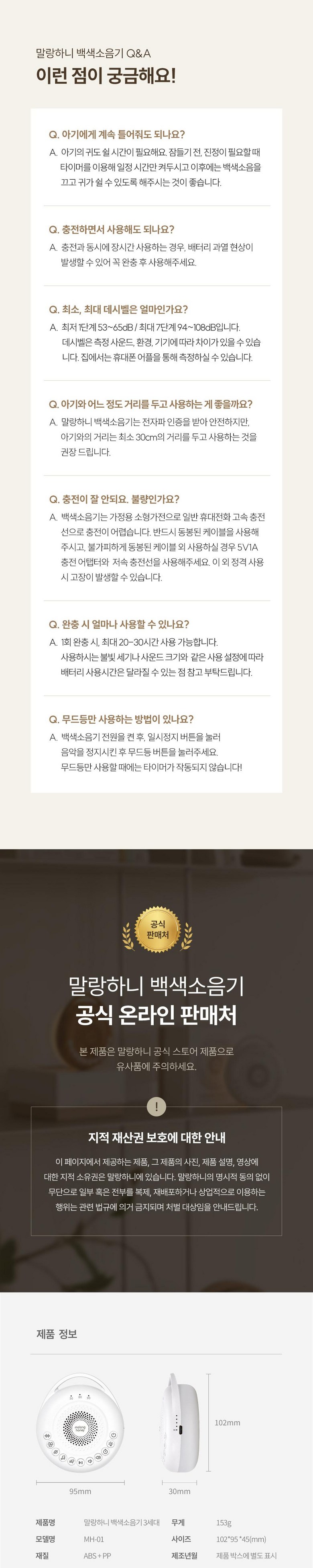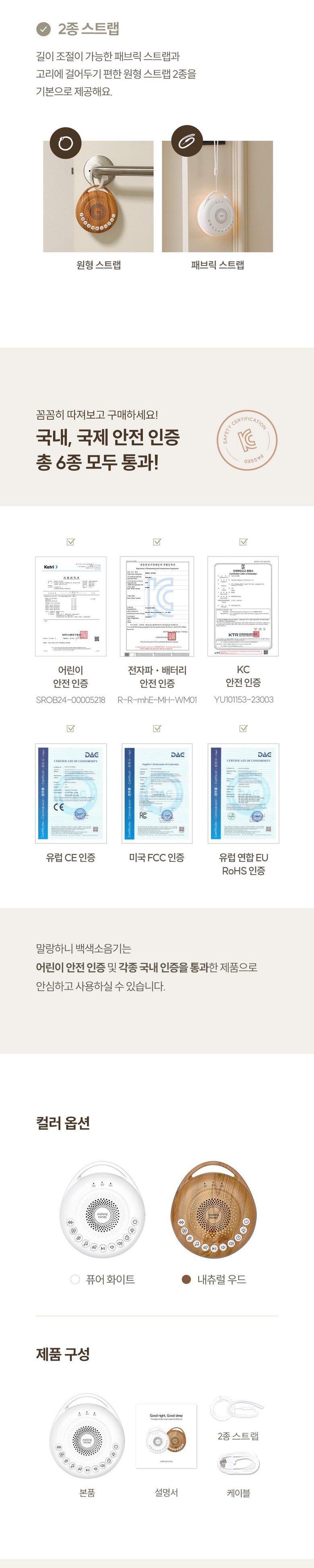 | 품명 및 모델명 | 말랑하니 아기신생아 백색소음기 퓨어화이트 | KC 인증정보 | 어린이제품 안전확인 : XU102393-20001B방송통신기자재적합성평가 : R-R-mhE-GM-03 |