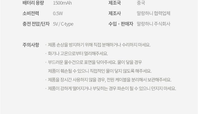 | 제조자(수입자) | 말랑하니 주식회사 | 제조국 | 중국 |