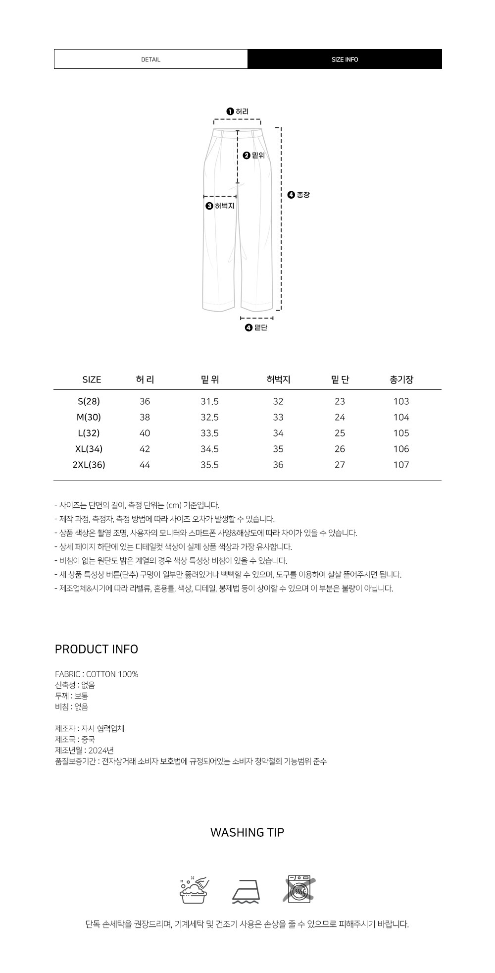 - 하의 사이즈: 남성 34~35인치