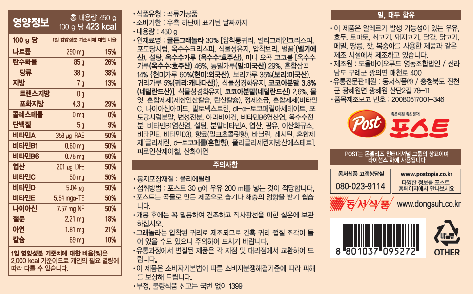 | 제품명 | 코코그래놀라 | 식품의 유형 | 컨텐츠 참조 |