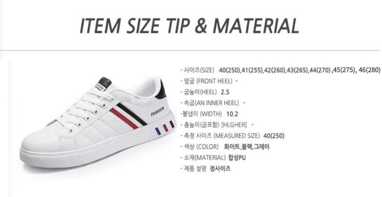 | 제품의 주소재(운동화인 경우에는 겉감,안감을 구분하여 표시) | 상품 상세페이지 참조 | 색상 | 상품 상세페이지 참조 |